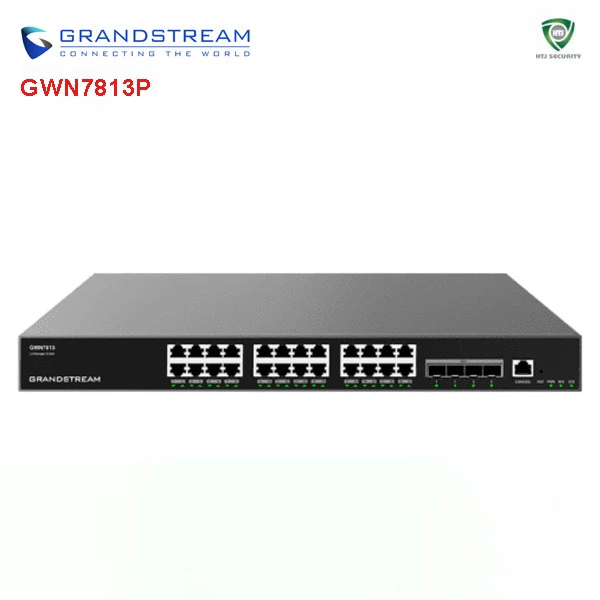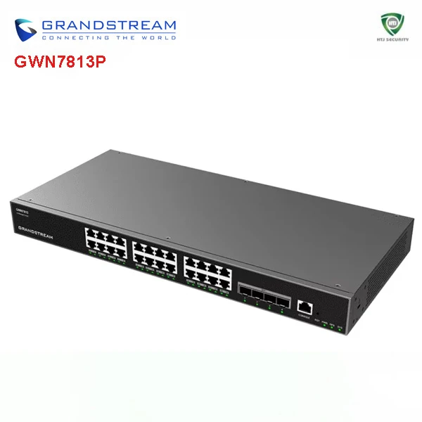 - Grandstream GWN7813P trang bị 24 cổng Gigabit Smart PoE + 4 cổng SFP+ 10Gbps, đáp ứng hệ thống doanh nghiệp lớn;