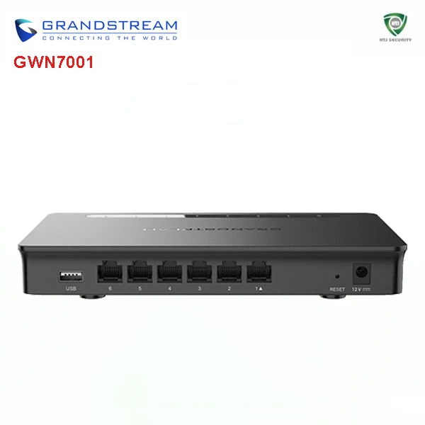 - Grandstream GWN7001 trang bị 6 cổng LAN Gigabit, cho phép tùy biến linh hoạt tối đa 6 WAN hoặc 6 LAN, phù hợp nhiều mô hình mạng;