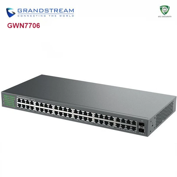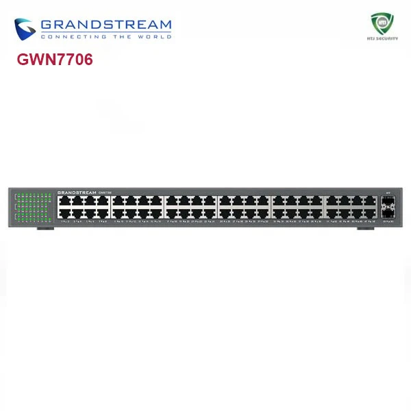- Grandstream GWN7706 trang bị 48 cổng Gigabit 10/100/1000Mbps, đáp ứng nhu cầu kết nối số lượng lớn thiết bị;